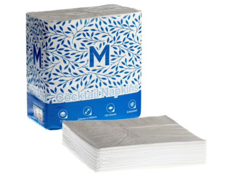 Cocktail serviettes are designed for use in all hospitality and food service establishments, from fine dining to fast food. The 1/4 fold design creates a perfectly square napkin presentation. Available in 2 ply thickness for quick and easy absorption of spills and messes. Sold in 2000 per outer.