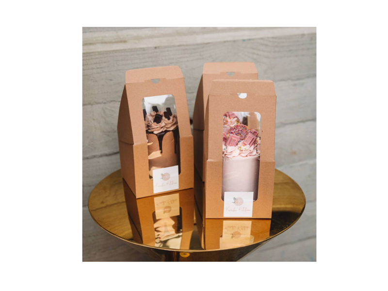 Cake Box with Window, 130L x 130W x 130H mm (5 x 5 x 5"), Natural Kraft