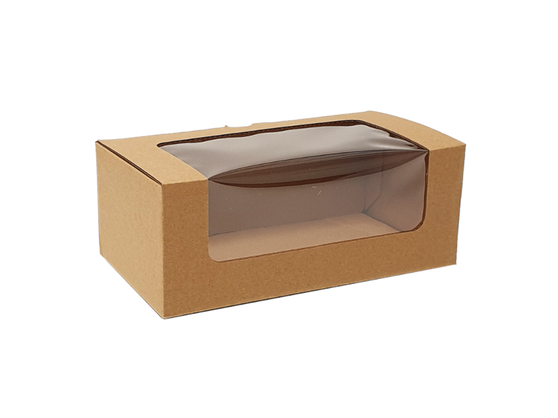 Rectangular Multipurpose Window Bakery Box Window, 220L x 120W x 80H mm, Natural Kraft