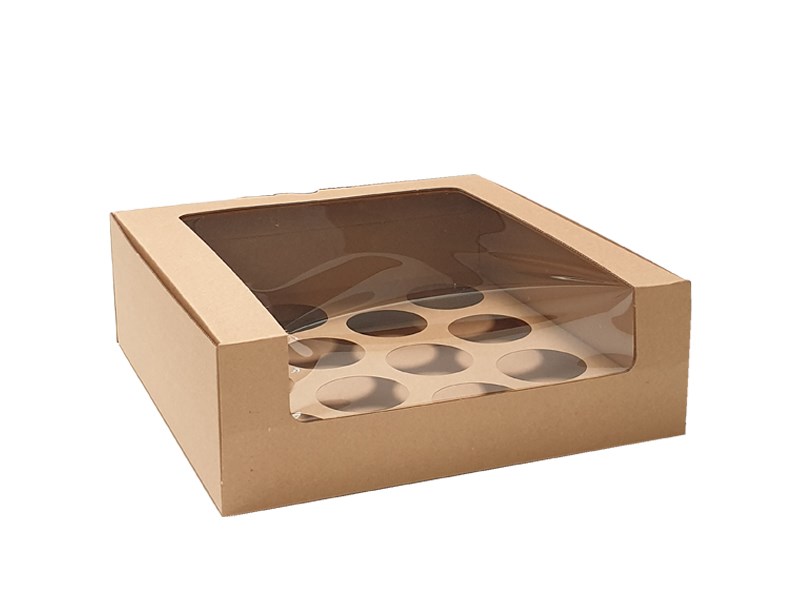 12 Cupcake Box with Window and Insert, 100H mm, Natural Kraft