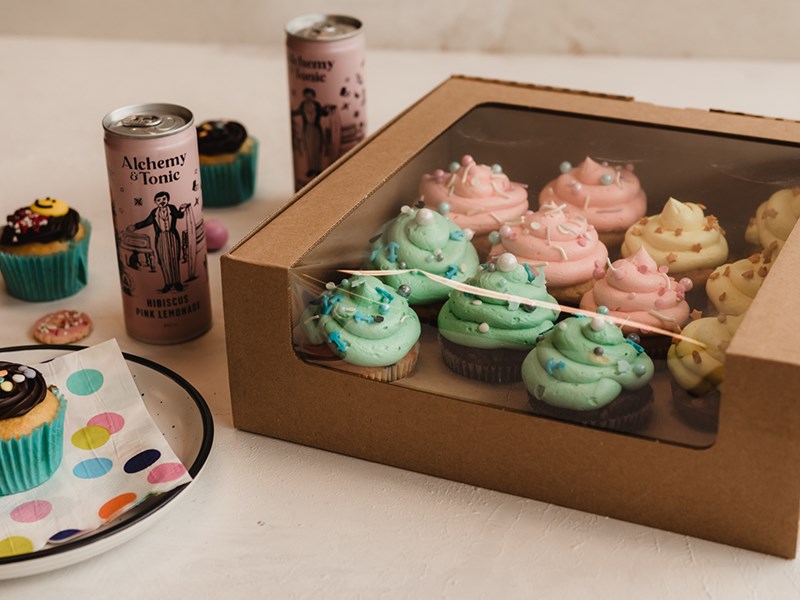 Large Window Cupcake Boxes for high visual impact. Easy to assemble and completely recyclable. Houses 12 beautifully decorated cupcakes up to 100 mm in height. Box and insert purchased separately in quantities of 50 per outer.