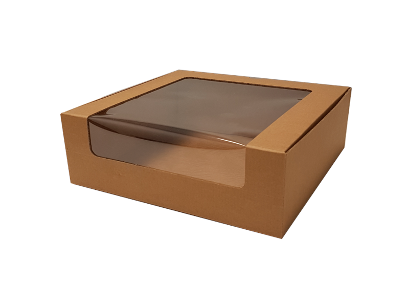 Window bakery boxes for visual impact in Berica Packaging's environmentally friendly range. Easy to assemble and serve with the added benefit of being completely recyclable. Perfect for cake displays in bakeries and delis. Sold in quantities of 50 per outer.