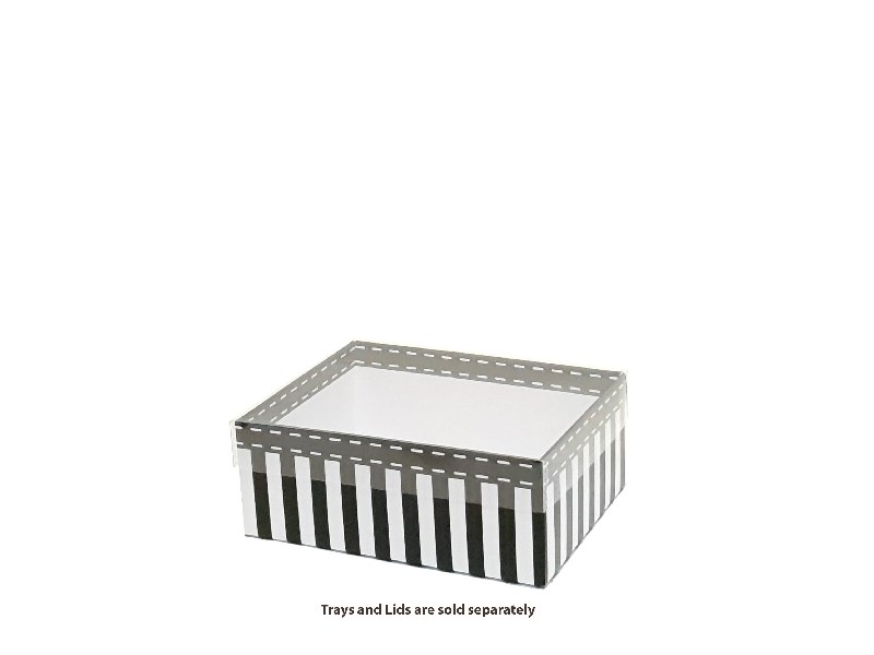 For an eye-catching, effortlessly sophisticated and festive look, packaging your items with style using this small chic black and white striped box. Quick and easy to assemble hamper tray. Fully recyclable in NZ. Sold in quantities of 50 per outer.