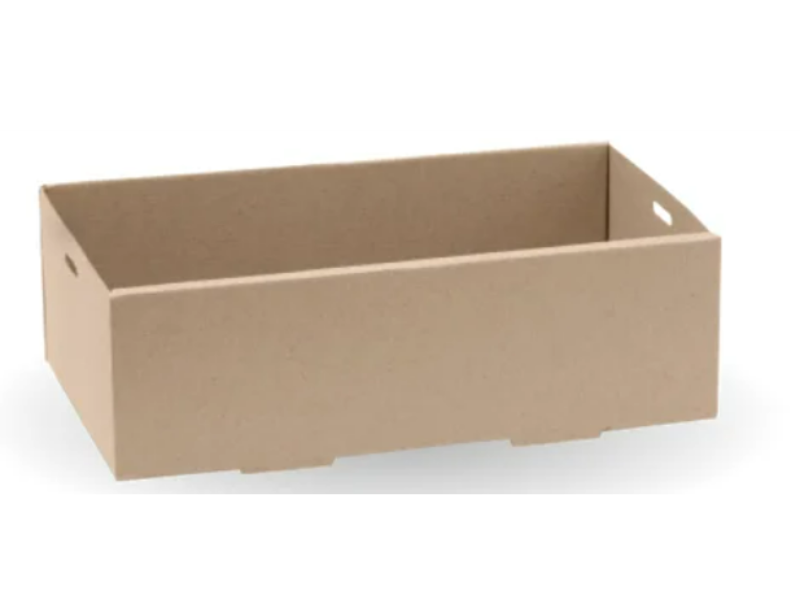 BioBoard x-small catering trays provides a simple 2 fold assembly and lid closure and ensures a great catering experience. Made from FSC™ Recycled certified paper, which means the forest-based material in this product is recycled. These catering trays are home compostable and carbon neutral. Sold in quantities of 100 per outer.