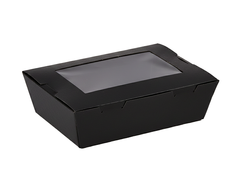 The Noir lunch box with PET window is a versatile and presentable food packaging solution designed for lunches, catering meals, and salads. Featuring an aqueous coating instead of a PLA lining, it is suitable for both warm and chilled foods while offering excellent product visibility through the clear PET window.
