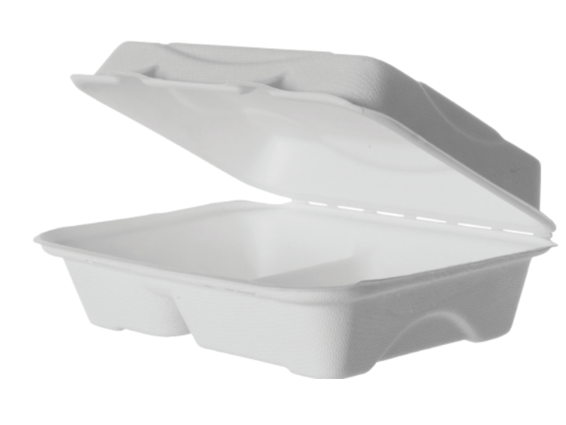 SugarCane, 2 Compartment Clamshell, 229L x 152W x 76H mm, White