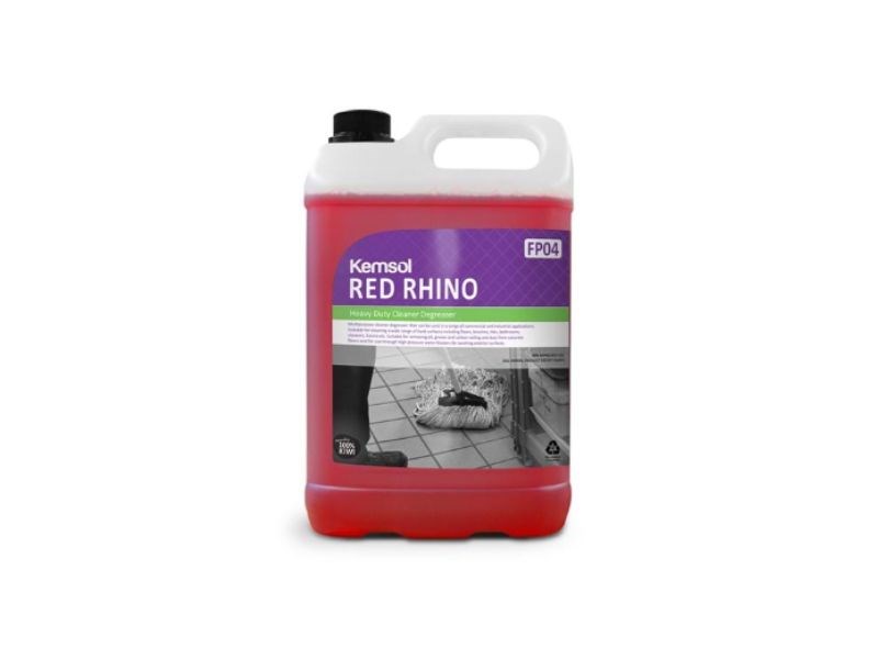 Red Rhino is a heavy-duty alkaline cleaner for the effective removal of grease and oil from a wide variety of general equipment, from walls and machine parts. Sanitises and clean in one step. This unique formulation is particularly good on poultry soiled surfaces common in processing environments. Results are often reported better with Red Rhino than many products considered far less user-friendly.