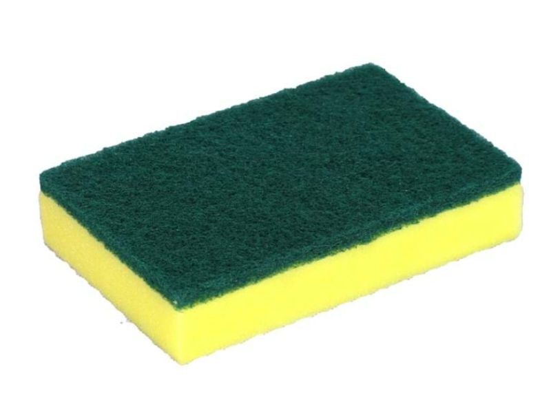 Commericial grade non-scratch scourer for removing heavy duty grime and safe to use on non-stick cookware. The cellulose sponge on the other side quickly wipes up spills and messes and can carry cleaning solutions to the work surface. Suitable for commercial and industrial kitchens.