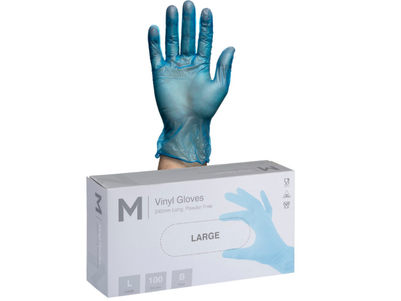 Large Vinyl Powder Free Disposable Gloves, Blue, 100/Pack