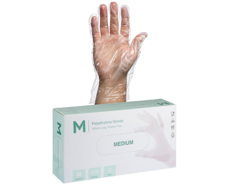 Clear polyethylene gloves are non sterile, single use, ambidextrous gloves ideal for food service and general low risk, light handling services. Polyethylene gloves offer the cheapest protection solution on the market, are loose fitting and clear coloured.