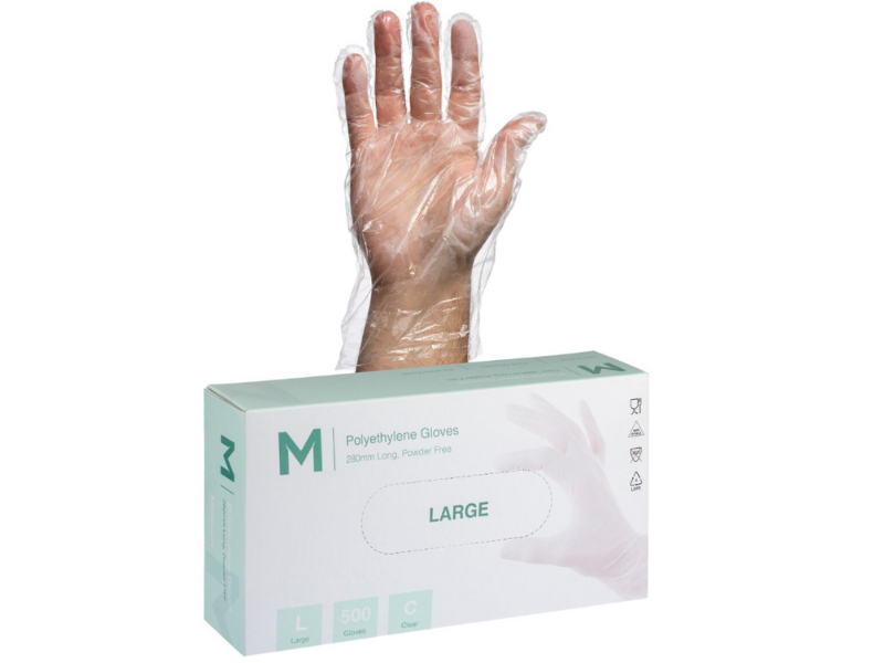 Clear polyethylene gloves are non sterile, single use, ambidextrous gloves ideal for food service and general low risk, light handling services. Polyethylene gloves offer the cheapest protection solution on the market, are loose fitting and clear coloured.