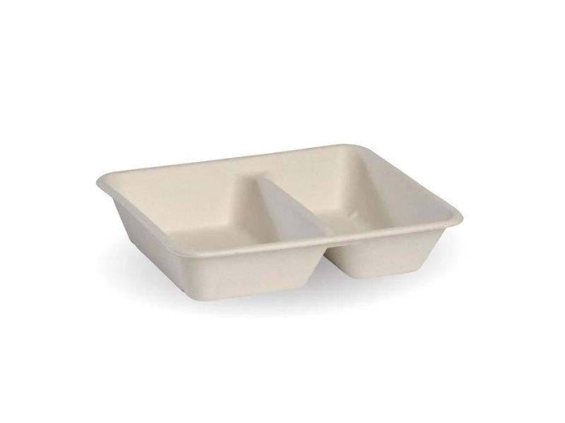 This plant fibre 2 compartment meal tray is made from reclaimed and rapidly renewable sugarcane pump. Sturdy and versatile. Water resistant with a matching leak-proof and secure lid available. Perfect for meals and food deliveries. Sold in quantities of 500 per outer.