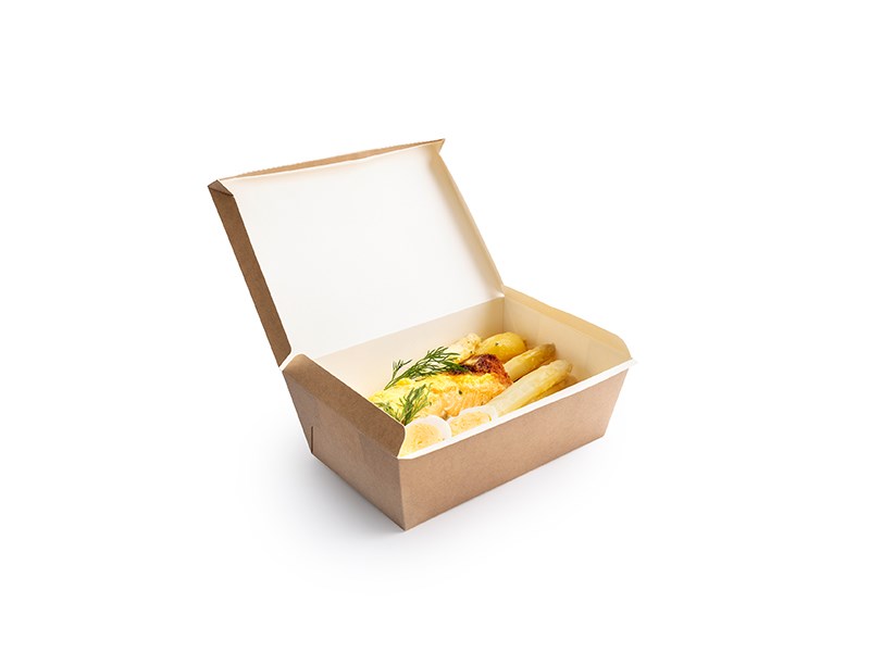 This premium paperboard meal box is a plastic free alternative to plastic lined paper meal boxes. Your customers can heat in the oven or microwave. They are 100% home and commercially compostable. Suitable for all types of School Lunches, cafe and food truck style foods, from ready meals and pastas to steaks. All without seeping into the paperboard. Sold in quantities of 300 per outer.