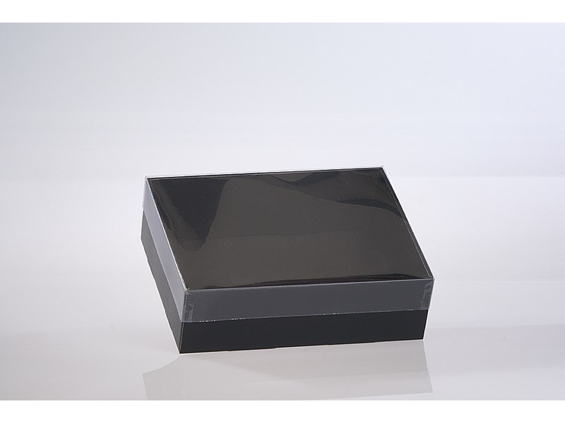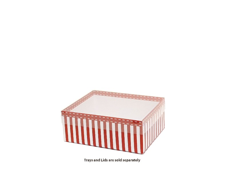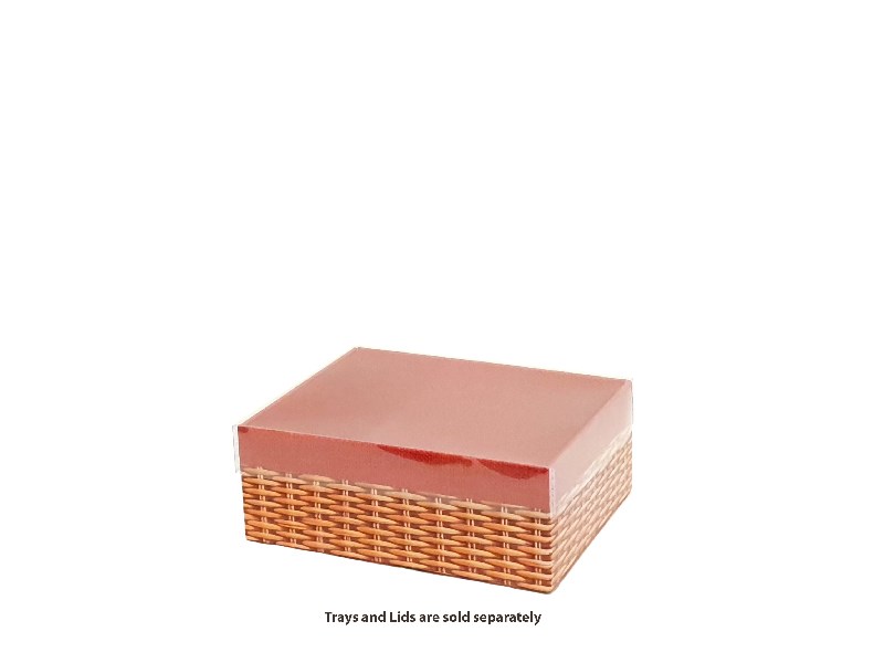 Transparent PVC Lids can be used on a combination of small hamper trays (B1). The transparent lid is designed to showcase your product. Supplied pre-assembled with corners glued. Sold in quantities of 50 per outer.