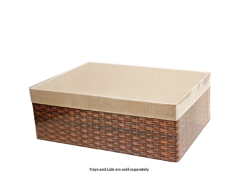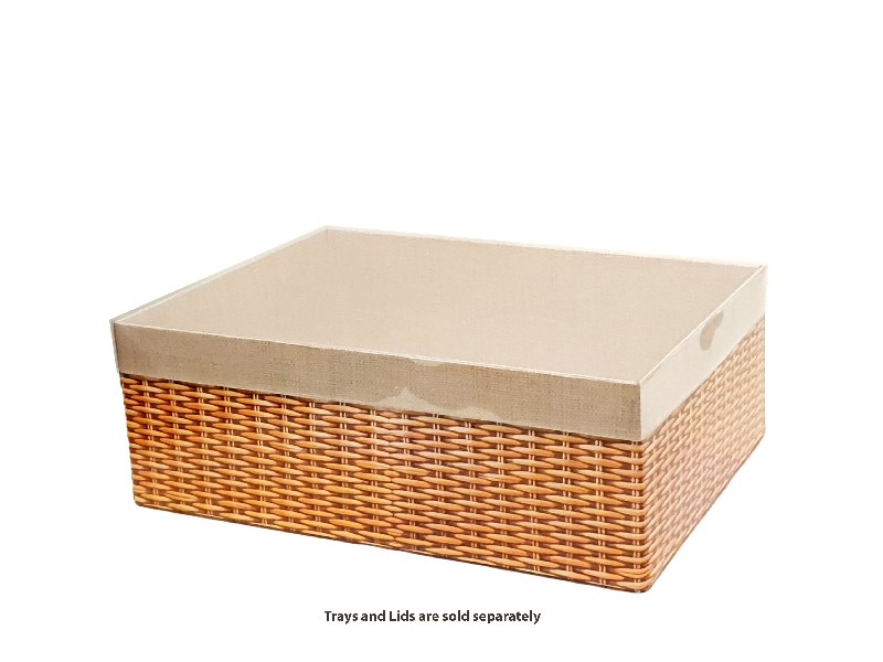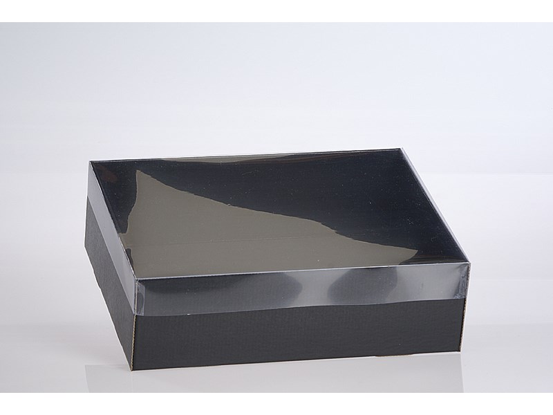 Transparent PVC Lids can be used on a combination of x-large hamper trays (B3). The transparent lid is designed to showcase your product. Supplied pre-assembled with corners glued. Sold in quantities of 25 per outer.