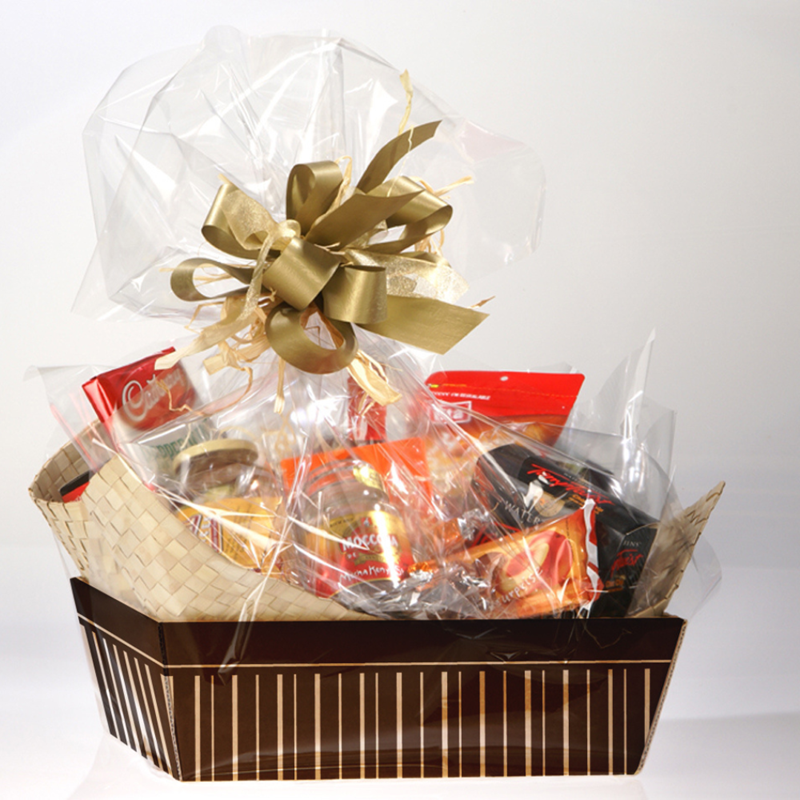 Scrunch it, crunch it and cover it with high-quality clear cellophane.  Cellophane adds the finishing touch to hampers, gifts and everything in between.  But how much do you need to wrap your hamper?