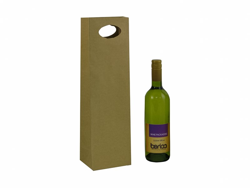 Wine Bag for one Bottle with Die Cut Handle, 110L x 90W x 420H mm, Natural Kraft