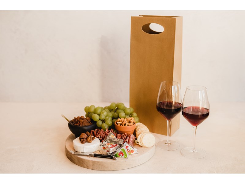 Die cut handle wine bags give a simple yet sleek presentation that will enhance your cellar door experience. Made from strong & durable kraft paper that is recyclable and reuseable. Reinforced base and handle suitable for two wine bottles. Sold in quantities of 100 per outer.